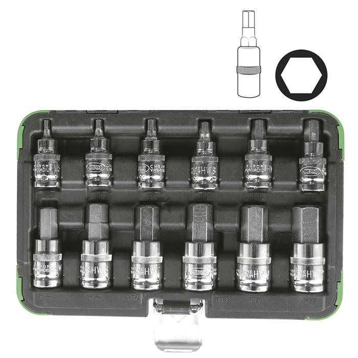 13 Šestougaoni nasadni kljucevi: 4, 4.5, 5, 5.5, 6, 7, 8, 9, 10, 11, 12, 13 i 14mm.
